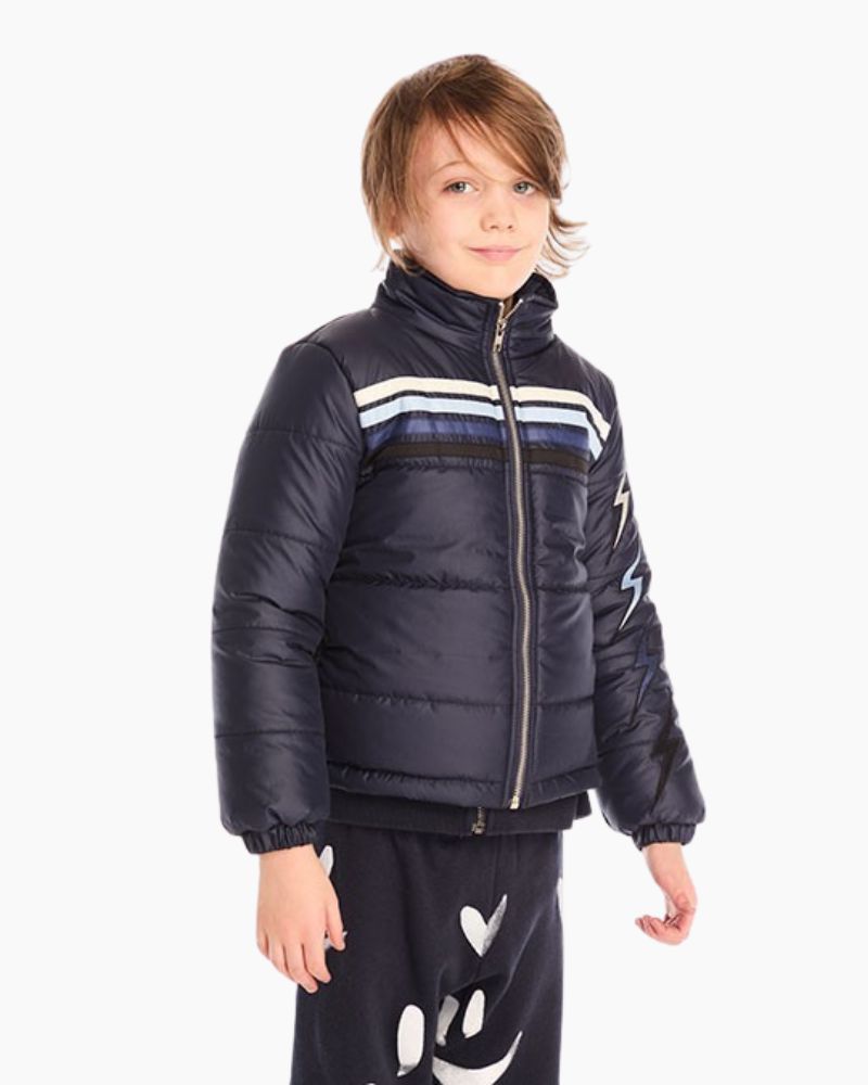 LS STRIPED PUFFER JACKET - NAVY / 4T is backordered and will ship as soon as it is back in stock.