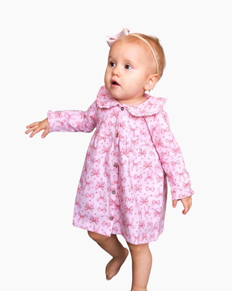 LS BOWS DRESS/BLOOMERS - PINK / 6_12M is backordered and will ship as soon as it is back in stock.