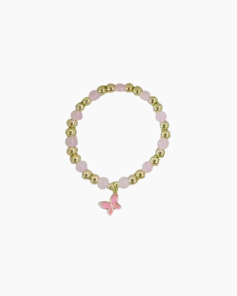 BUTTERFLY BALL BEAD BRACELET - GOLD/PINK