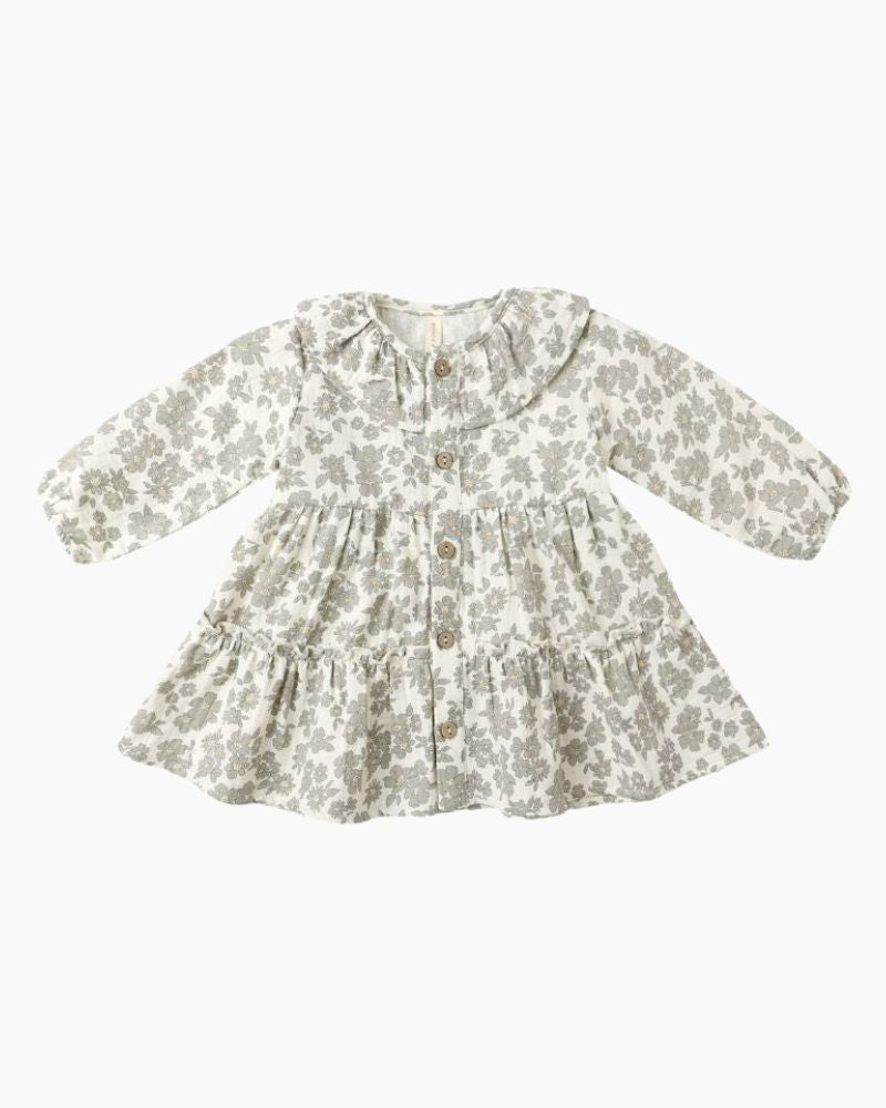 LS RFFL COLLAR BUTTON DRESS - IVORY/GREEN / 4/5 is backordered and will ship as soon as it is back in stock.
