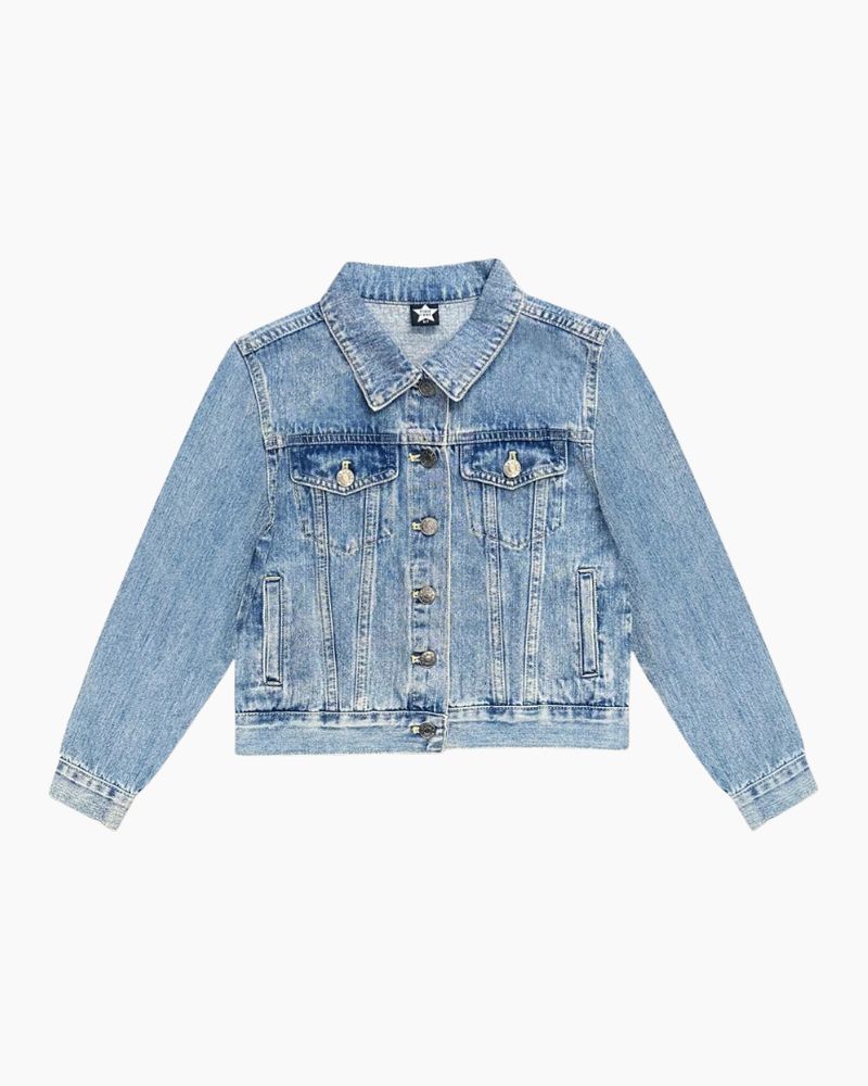 LS SEQUIN BOW APLQ DENIM JACKET - MED WASH / 4T is backordered and will ship as soon as it is back in stock.
