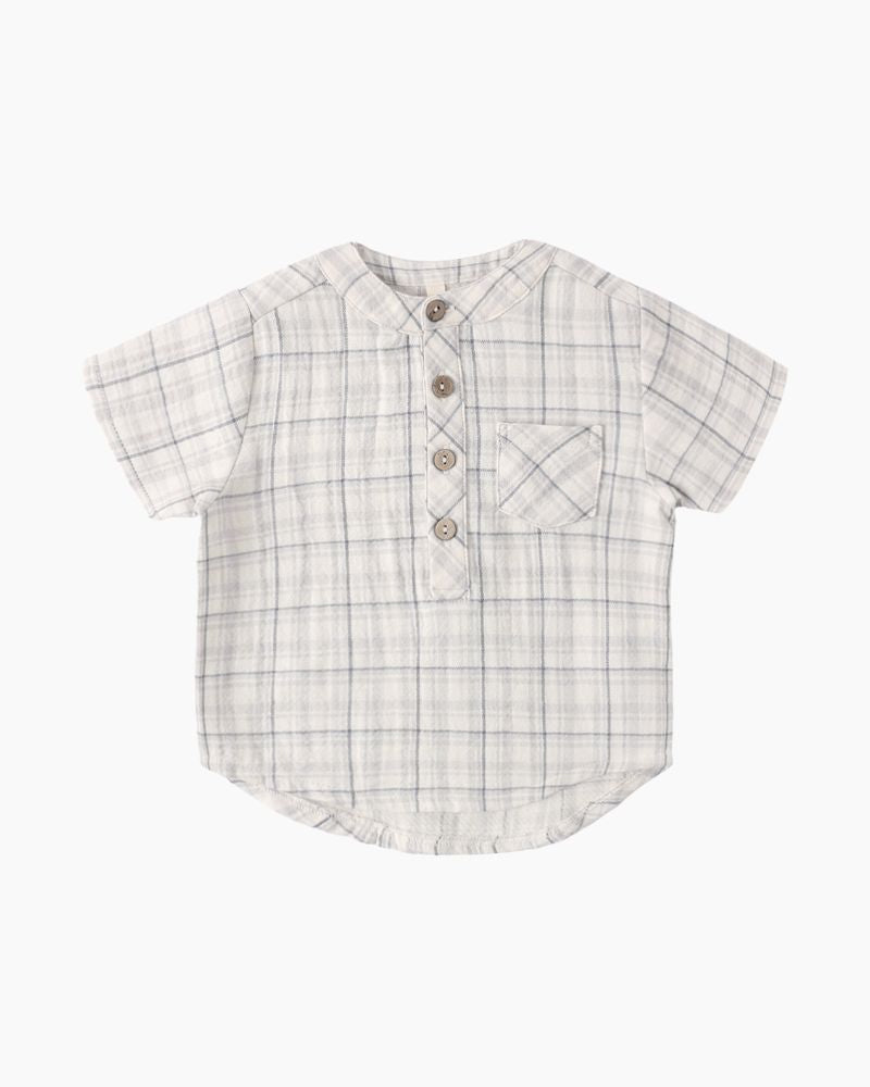 SS BLUE PLAID JAXSON SHIRT - BLUE / 6_12M is backordered and will ship as soon as it is back in stock.