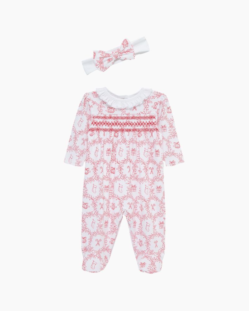 HOLIDAY TOILE FOOTIE & HEADBAND