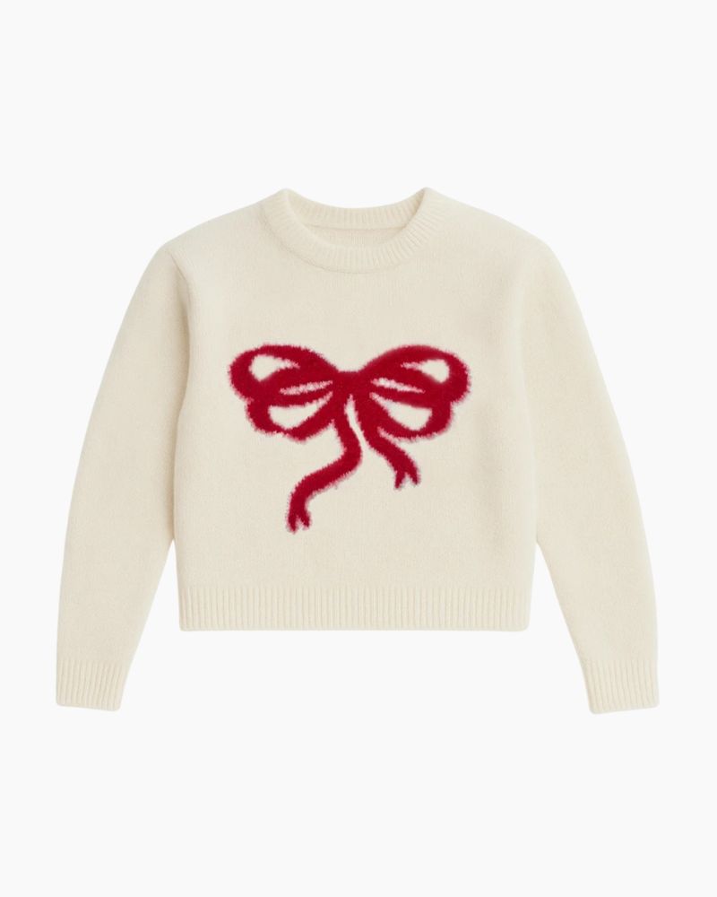 INTARSIA BOW SWEATER - IVORY/RED / 8 is backordered and will ship as soon as it is back in stock.