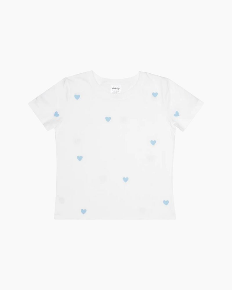 SS A/O BLUE HRTS TEE - WHITE / 10/12 is backordered and will ship as soon as it is back in stock.