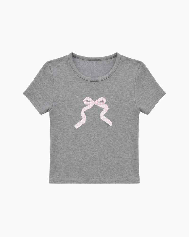 SS GINGHAM BOW TEE - H GREY / 12 is backordered and will ship as soon as it is back in stock.