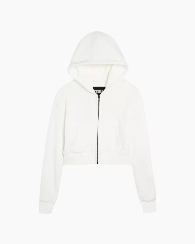 DYLAN CROP ZIP HOODIE, WHITE - 8 is backordered and will ship as soon as it is back in stock.