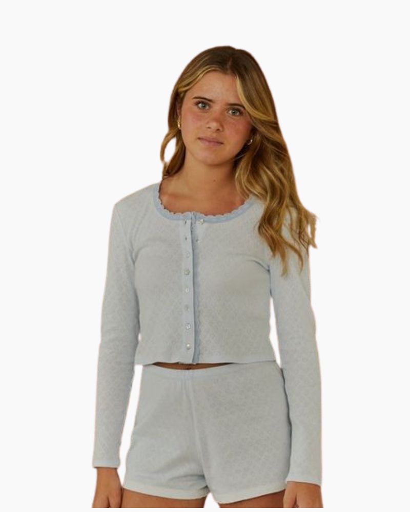 HEART POINTELLE CARDIGAN, PASTEL BLUE
