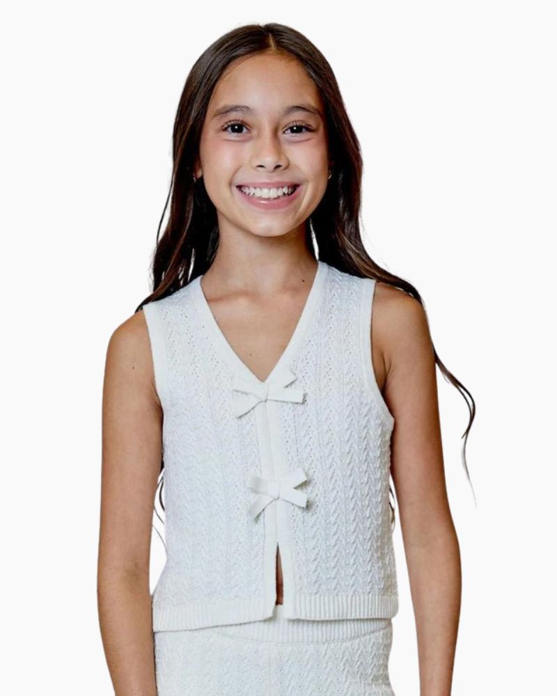 KNIT BOW DETAIL TANK - VANILLA / 8 is backordered and will ship as soon as it is back in stock.