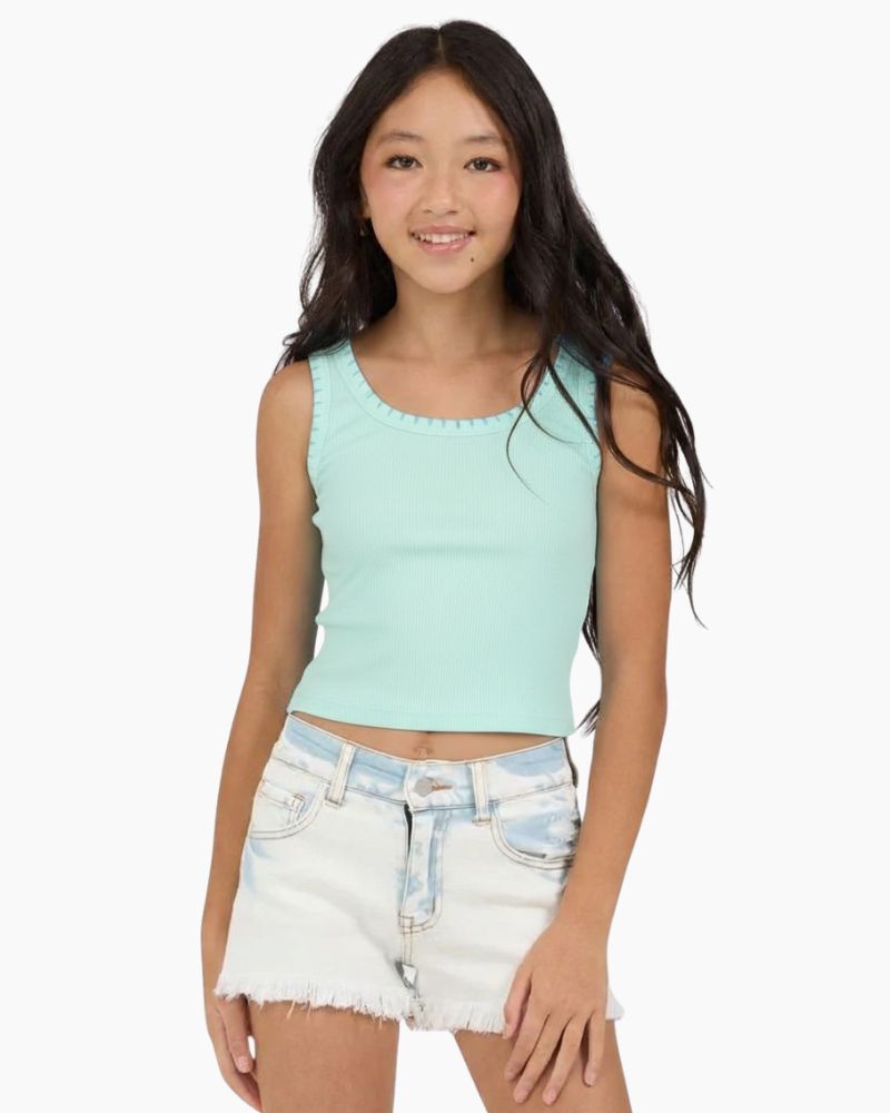 SL LT AQUA W/DK. AQUA WHIP STITCH TANK, LT AQUA - 8 is backordered and will ship as soon as it is back in stock.