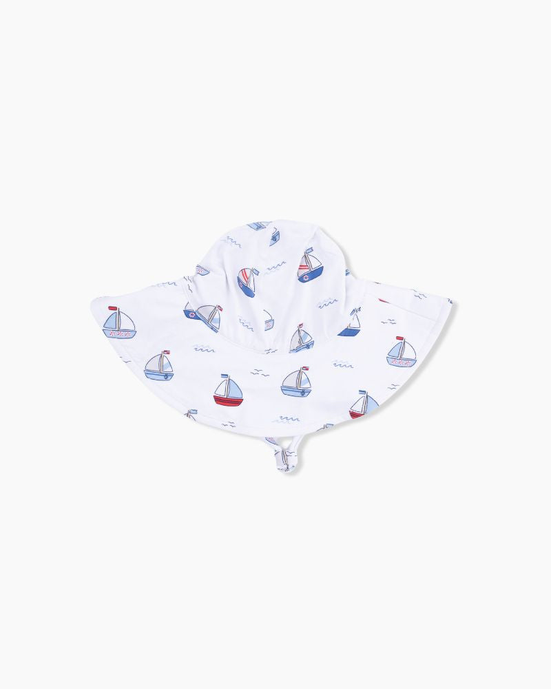 BUBBLY SAILBOATS SUN HAT - WHITE/BLUE / 0_6M is backordered and will ship as soon as it is back in stock.