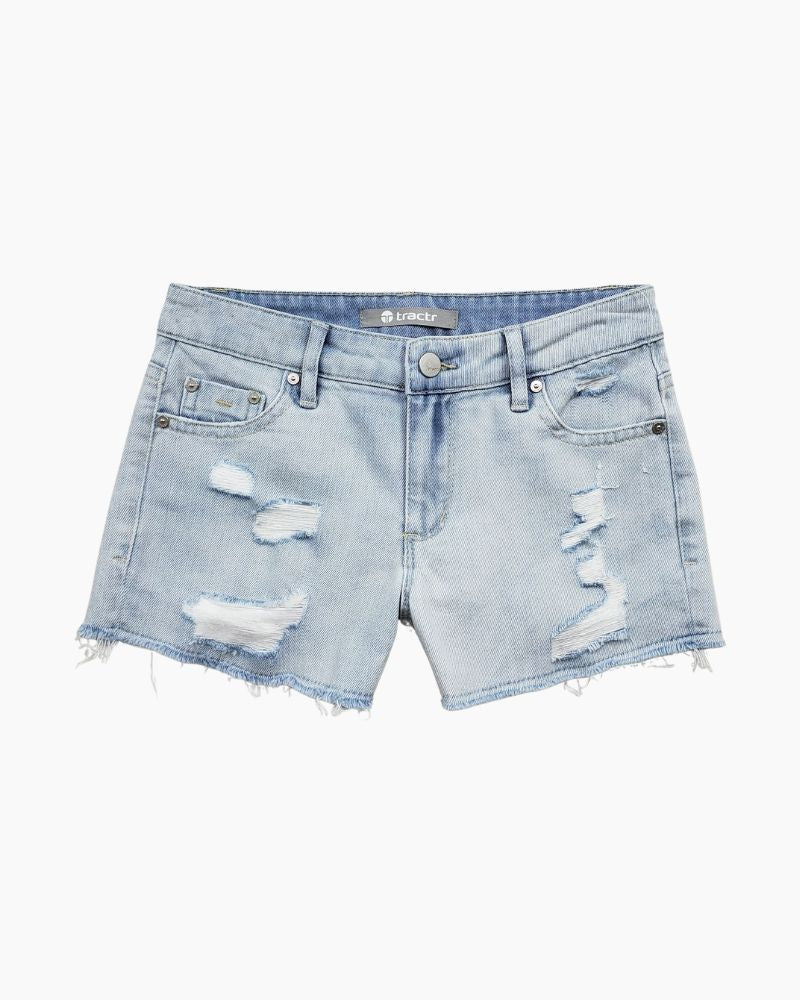 DISTRESSD FRAY HEM SHORT - LT INDIGO / 7 is backordered and will ship as soon as it is back in stock.