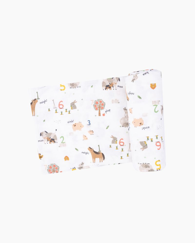 FARM SOUNDS SWADDLE BLNKT 45X45-hold for footie is backordered and will ship as soon as it is back in stock.