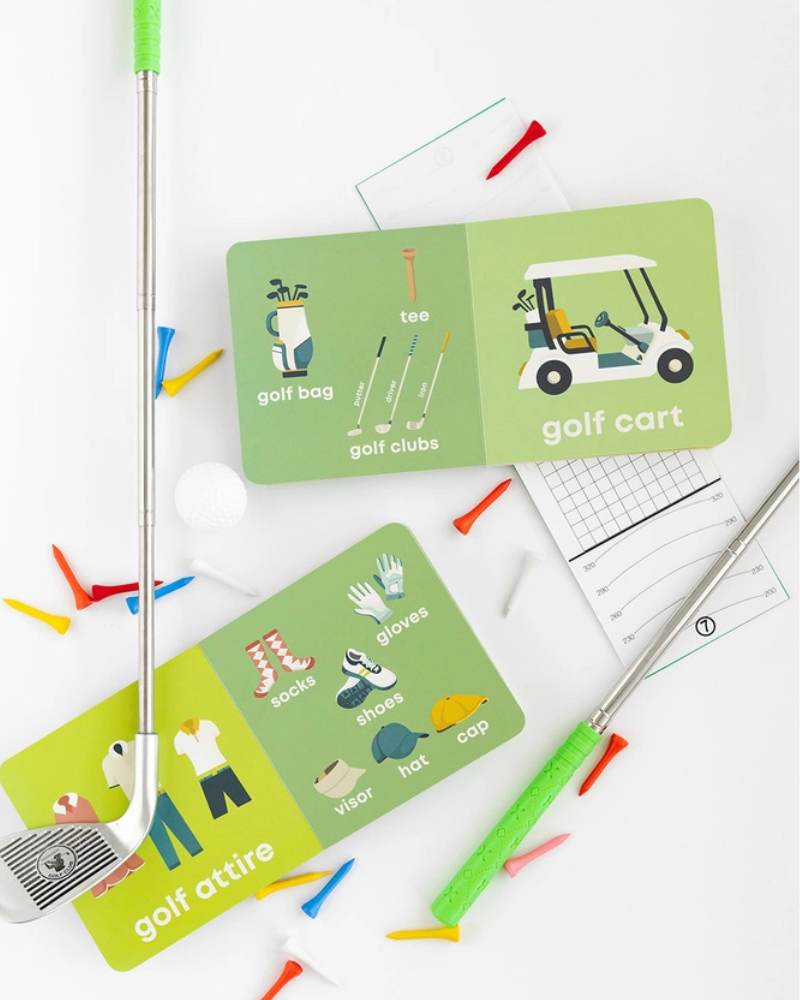 Tee off playtime with this delightful Golf Baby Board Book! Durable pages and vibrant illustrations make it perfect for little learners. A fun first book for a little golf enthusiast.