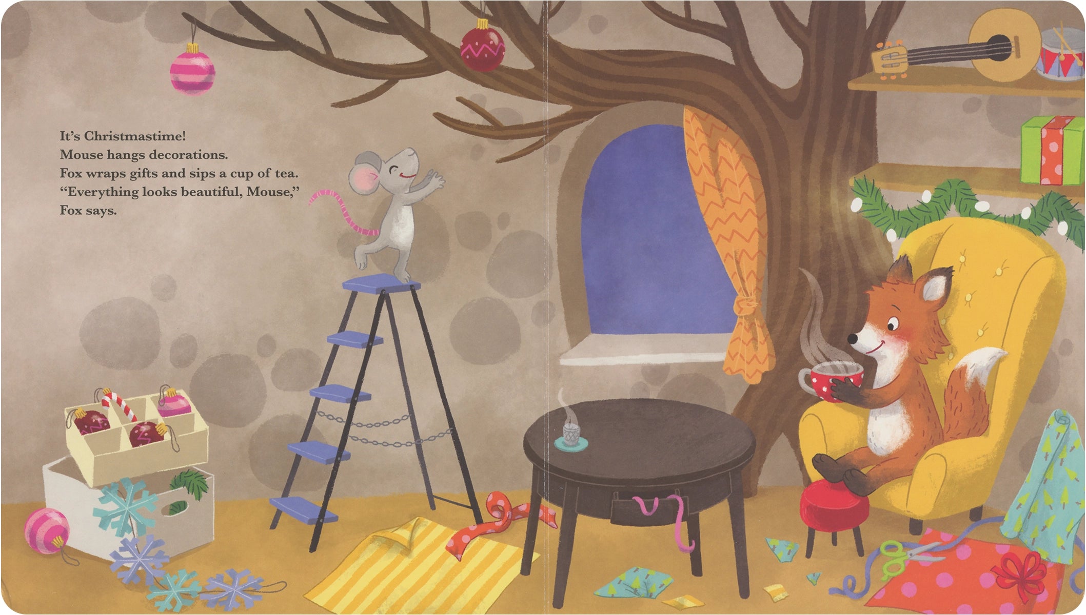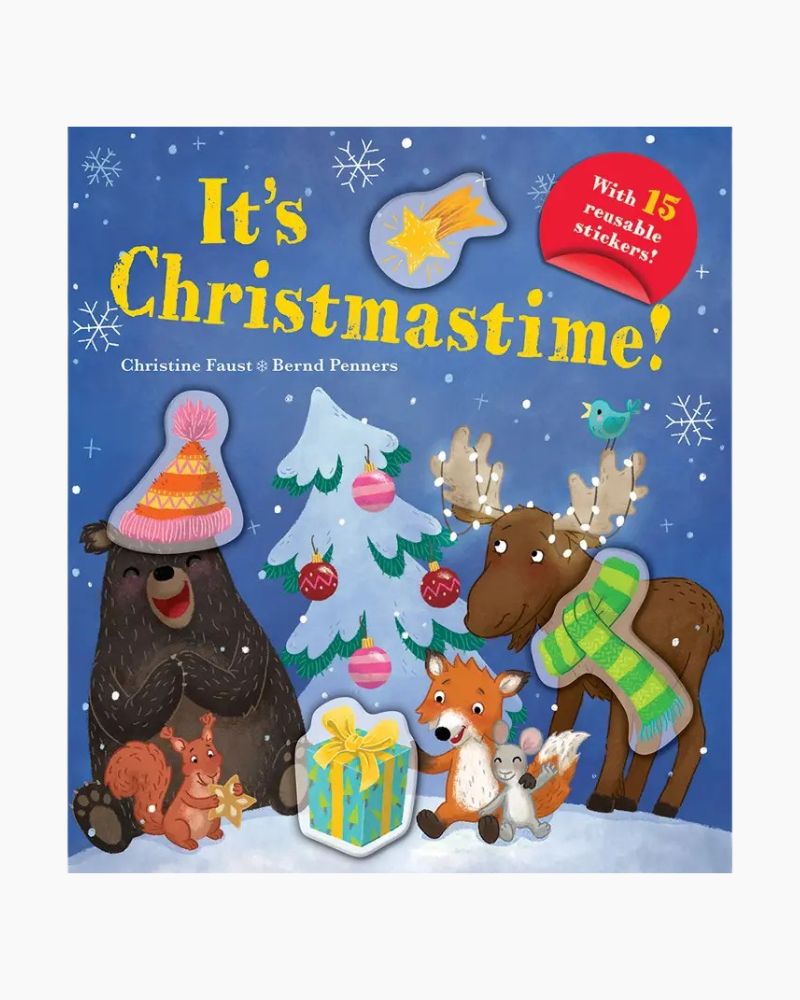It’s Christmastime! Moose, Bear, Squirrel, Mouse, and Fox can’t wait! But they could use some help getting ready. The 15 reusable stickers let young readers decorate and play over and over again, in any way they like.  Board book. 16 Pages.