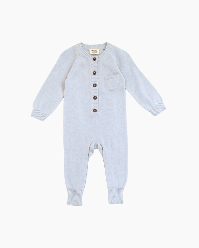 KNIT BUTTON DETAIL POCKET COVERALL, SKY BLUE