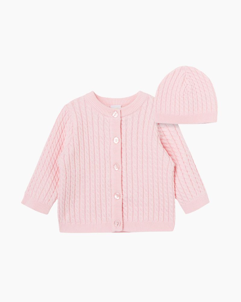 LS CABLE KNIT CARDI + HAT - PINK / 0_3M is backordered and will ship as soon as it is back in stock.
