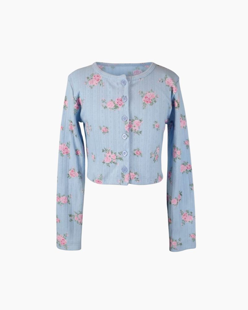 LS FLORAL POINTELLE CARDI - BLUE / 8 is backordered and will ship as soon as it is back in stock.