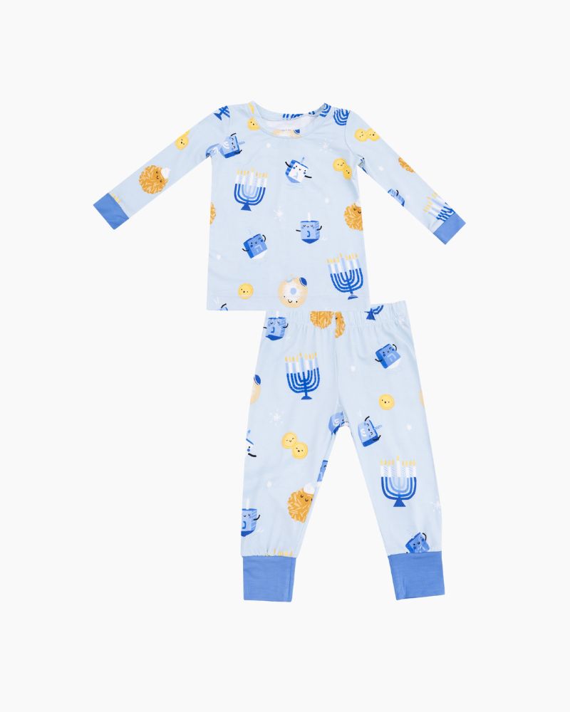 LS HANUKKAH PAJAMA SET - BLUE / 3/4 is backordered and will ship as soon as it is back in stock.