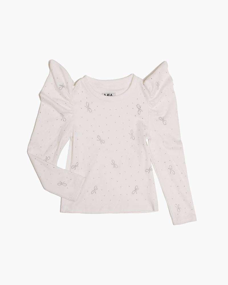 LS SCTR BOWS PUFF SHLDR TOP - WHITE / 4T is backordered and will ship as soon as it is back in stock.