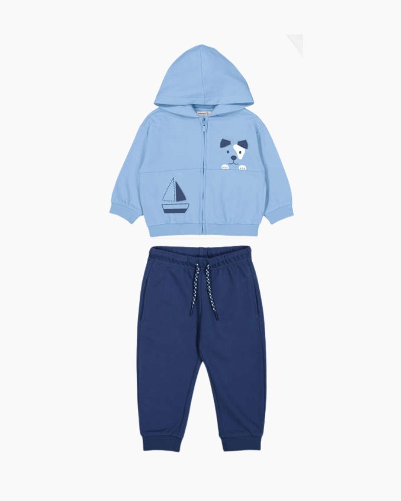 SAILING DOG ZIP HOODIE/PANT SET - LT BLUE/DK BLUE / 6_9M is backordered and will ship as soon as it is back in stock.