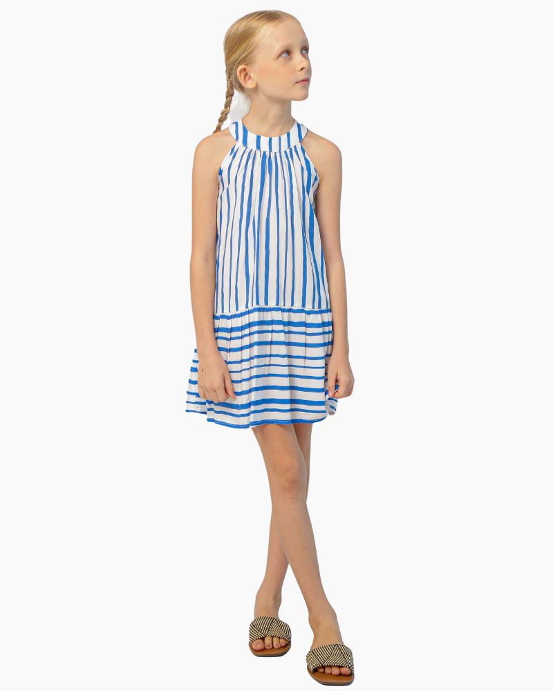 highNCK VERT STRIPES DRESS - ROYAL/WHITE / 7 is backordered and will ship as soon as it is back in stock.