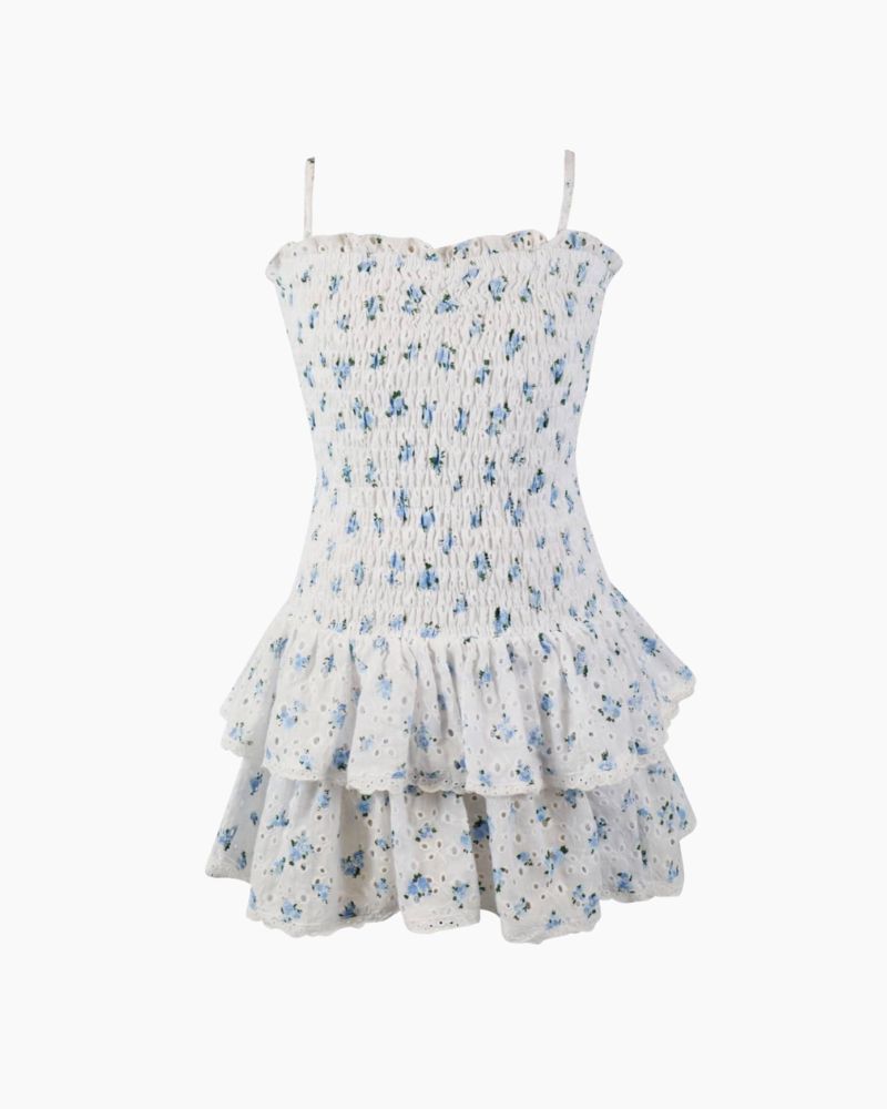 SL SMOCKED RFL BTTM FLRL EYELET DRESS - WHITE/BLUE / 10 is backordered and will ship as soon as it is back in stock.