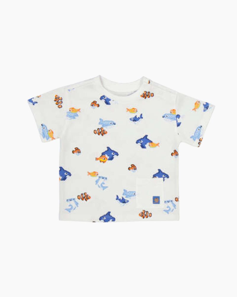 SS SCTR PIXEL FISH TEE - WHITE / 2T is backordered and will ship as soon as it is back in stock.