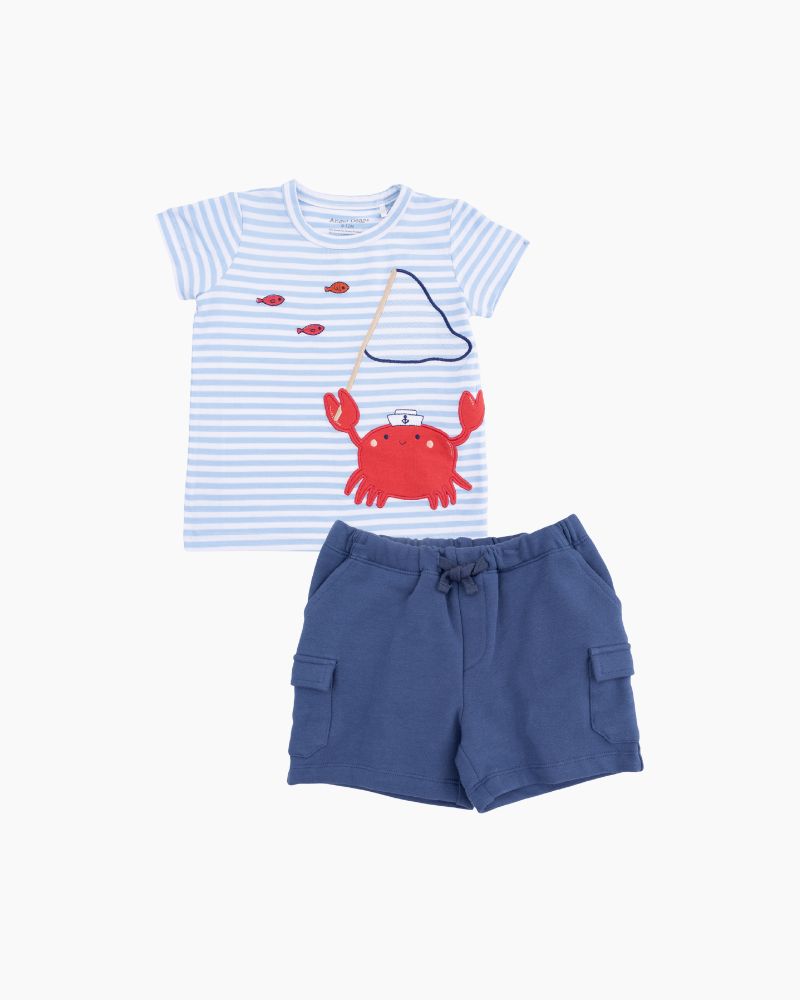 SS SLR SEA CRTRS APLQ TEE/CARGO SHORT - BLUE / 12_18M is backordered and will ship as soon as it is back in stock.