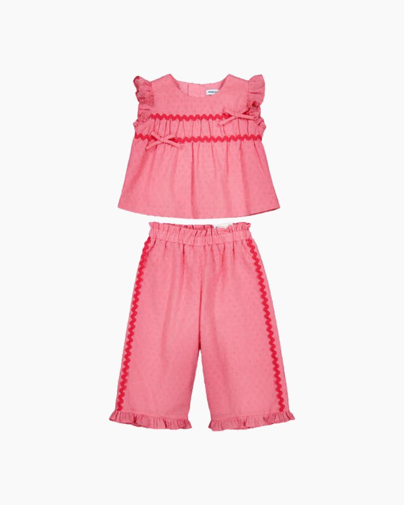 SWISS DOT & RIC RAC TOP & PANT SET - GERANIUM / 9_12M is backordered and will ship as soon as it is back in stock.