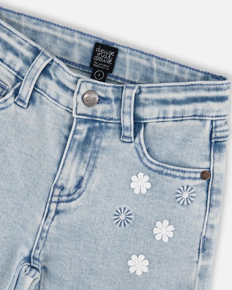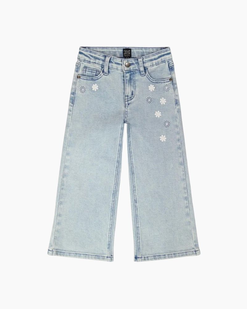 WIDE LEG JEANS WITH EMBROIDERED DAISIES