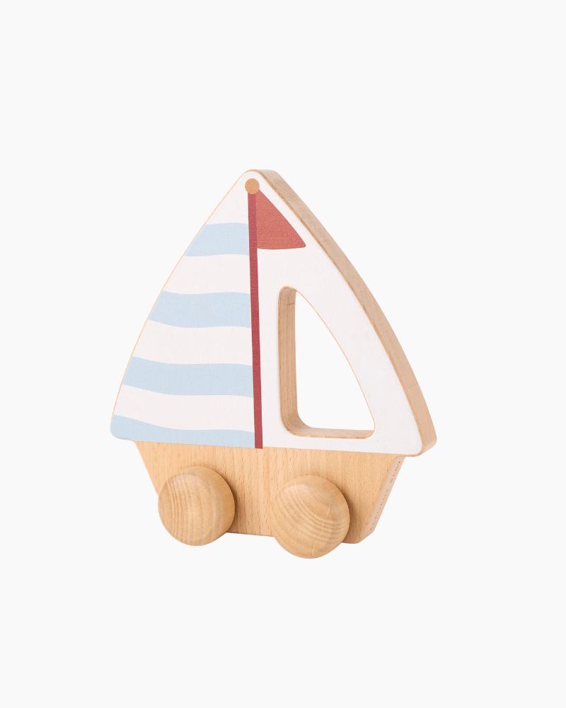 This adorable sailboat features soft colors and easy-rolling wheels, perfect for little hands to push and pull. A delightful blend of fun and function, it encourages motor skill development and imaginative play, making it a perfect gift for any nursery or playroom. A beautiful keepsake for years to come.